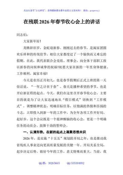 在XX统战部2026年春节后收心会暨重点工作部署会上的讲话