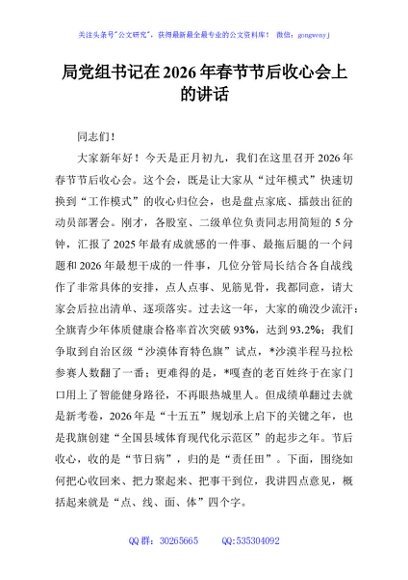 / 局党组书记在2026年春节节后收心会上的讲话