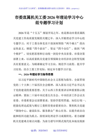 / 市委直属机关工委2026年理论学习中心组专题学习计划