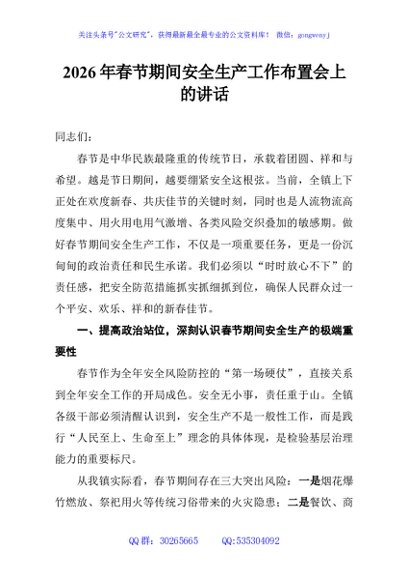/ 2026年春节期间安全生产工作布置会上的讲话