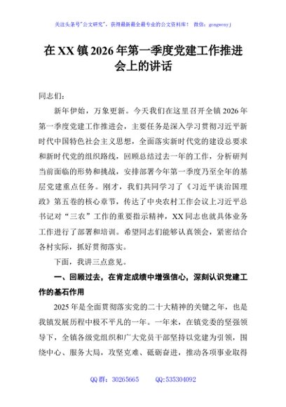 / 在XX镇2026年第一季度党建工作推进会上的讲话