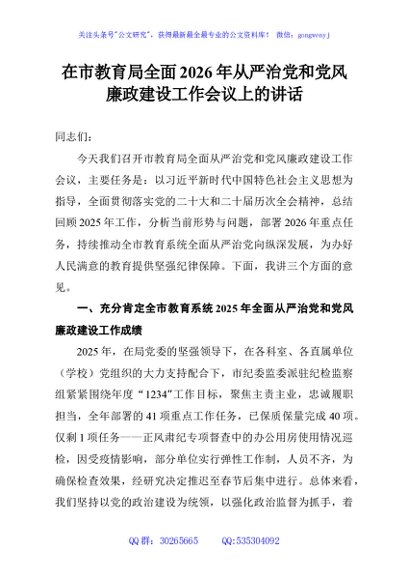 / 在市教育局全面2026年从严治党和党风廉政建设工作会议上的讲话
