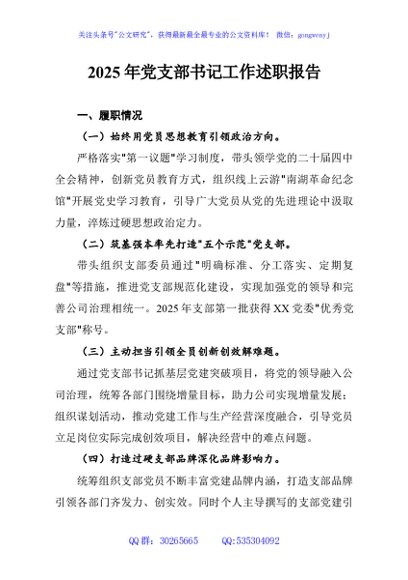 未生成预览图,长按二维码添加 2025年党支部书记工作述职报告 - 公文研究