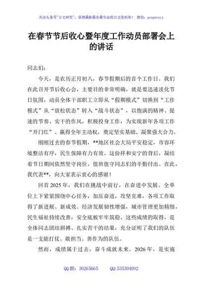 / 在春节节后收心暨年度工作动员部署会上的讲话