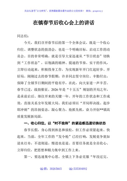 / 在镇春节后收心会上的讲话