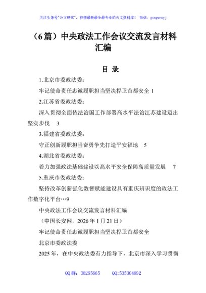 (6篇)中央政法工作会议交流发言材料汇编