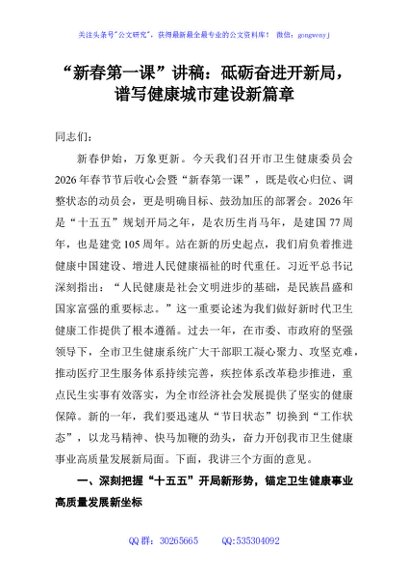 / “新春第一课”讲稿:砥砺奋进开新局,谱写健康城市建设新篇章
