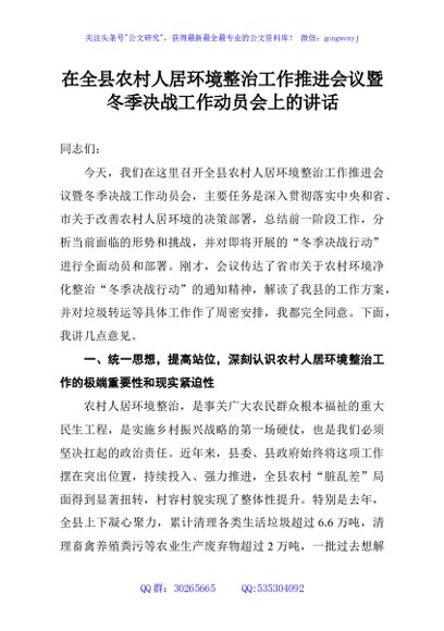 / 在全县农村人居环境整治工作推进会议暨冬季决战工作动员会上的讲话