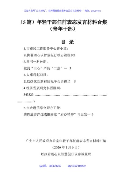 / (5篇)年轻干部任前表态发言材料合集(青年干部)