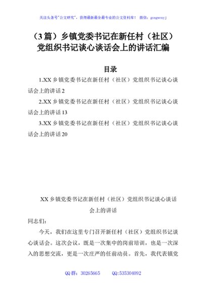 / (3篇)乡镇党委书记在新任村(社区)党组织书记谈心谈话会上的讲话汇编