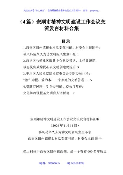 / (4篇)安顺市精神文明建设工作会议交流发言材料合集