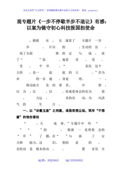 / 观专题片《一步不停歇半步不退让》有感:以案为镜守初心科技报国担使命