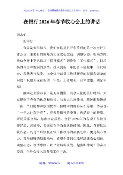 / 在银行2026年春节收心会上的讲话