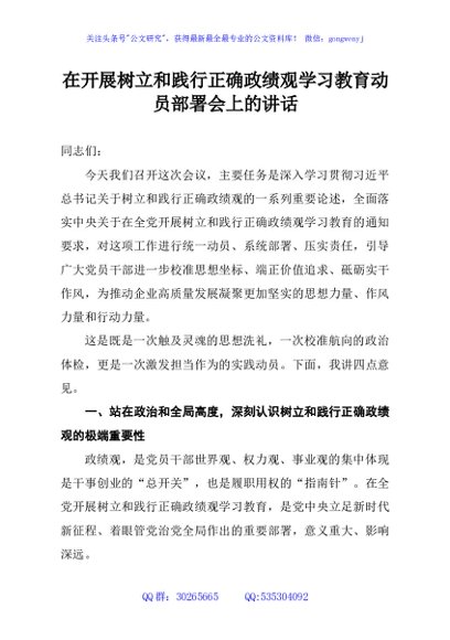 / 在开展树立和践行正确政绩观学习教育动员部署会上的讲话