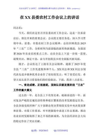 / 在XX县委农村工作会议上的讲话