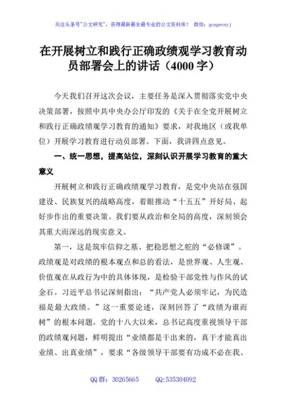 / 在开展树立和践行正确政绩观学习教育动员部署会上的讲话(4000字)