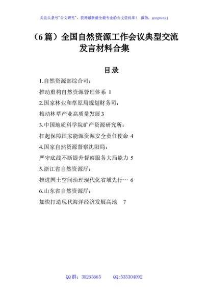 / (6篇)全国自然资源工作会议典型交流发言材料合集