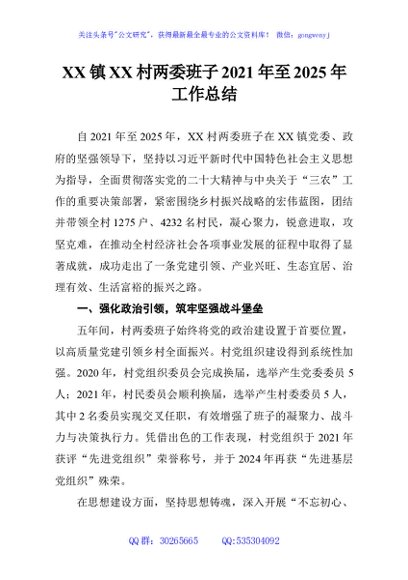 / XX镇XX村两委班子2021年至2025年工作总结