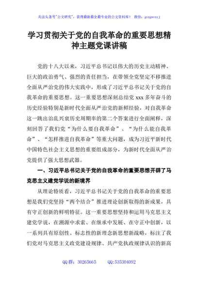 / 学习贯彻关于党的自我革命的重要思想精神主题党课讲稿