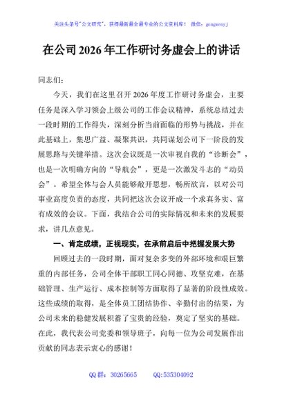 / 在公司2026年工作研讨务虚会上的讲话