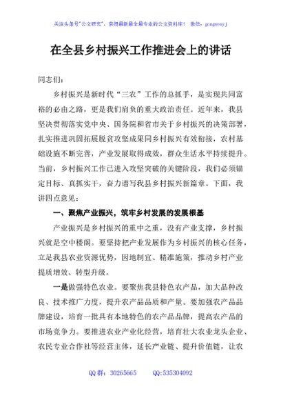 / 在全县乡村振兴工作推进会上的讲话