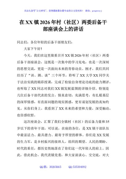 / 在XX镇2026年村(社区)两委后备干部座谈会上的讲话