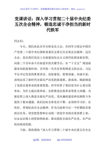 / 党课讲话:深入学习贯彻二十届中央纪委五次全会精神,锻造忠诚干净担当的新时代铁军