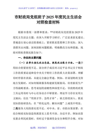 / 市财政局党组班子2025年度民主生活会对照检查材料