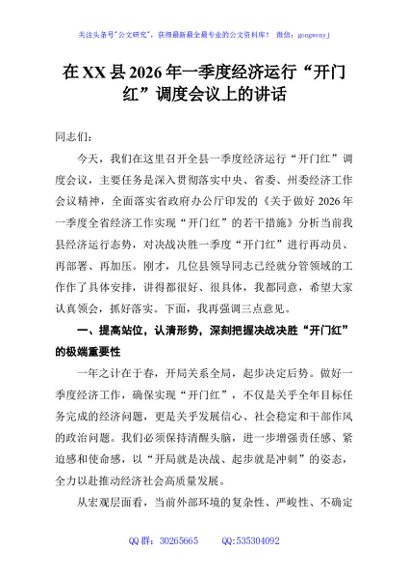/ 在XX县2026年一季度经济运行“开门红”调度会议上的讲话