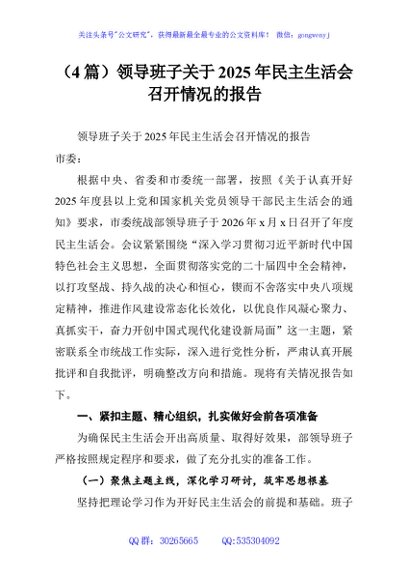 / (4篇)领导班子关于2025年民主生活会召开情况的报告