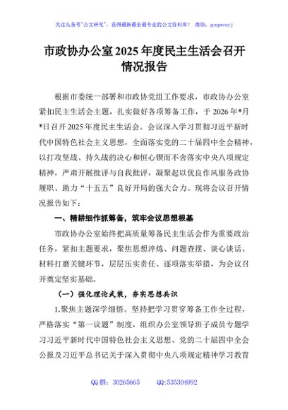 / 市政协办公室2025年度民主生活会召开情况报告