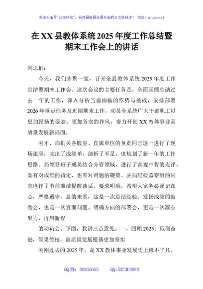 / 在XX县教体系统2025年度工作总结暨期末工作会上的讲话