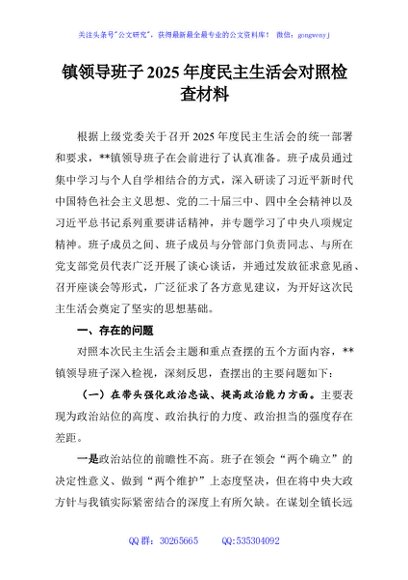 / 镇领导班子2025年度民主生活会对照检查材料