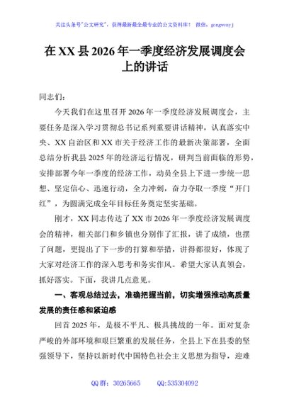 / 在XX县2026年一季度经济发展调度会上的讲话