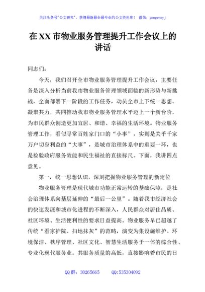 / 在XX市物业服务管理提升工作会议上的讲话