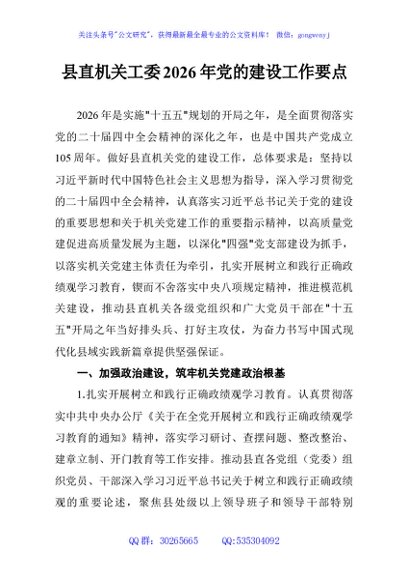 / 县直机关工委2026年党的建设工作要点
