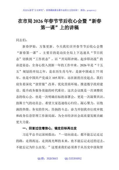 / 在市局2026年春节节后收心会暨“新春第一课”上的讲稿