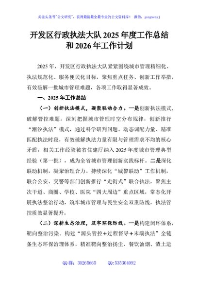 / 开发区行政执法大队2025年度工作总结和2026年工作计划