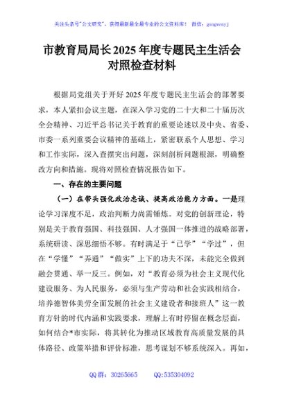 / 市教育局局长2025年度专题民主生活会对照检查材料