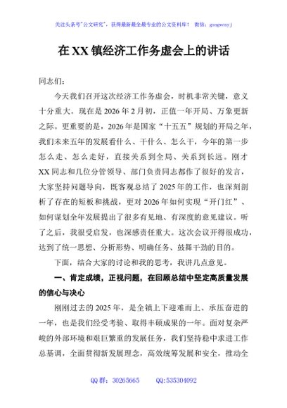 / 在XX镇经济工作务虚会上的讲话