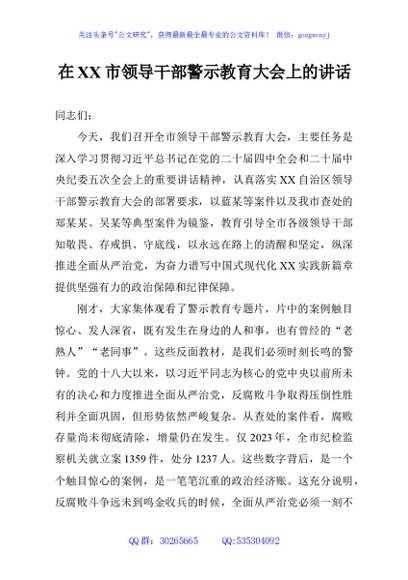 / 在XX市领导干部警示教育大会上的讲话