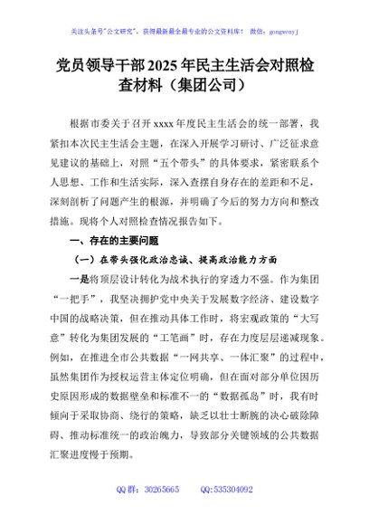 / 党员领导干部2025年民主生活会对照检查材料(集团公司)