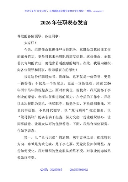 / 2026年任职表态发言