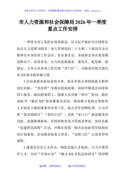 / 市人力资源和社会保障局2026年一季度重点工作安排