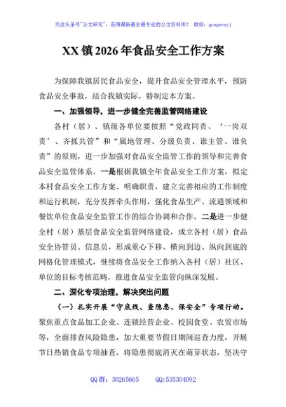 / XX镇2026年食品安全工作方案