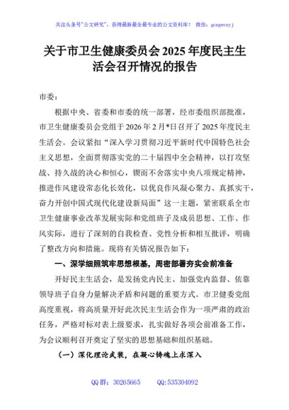 / 关于市卫生健康委员会2025年度民主生活会召开情况的报告