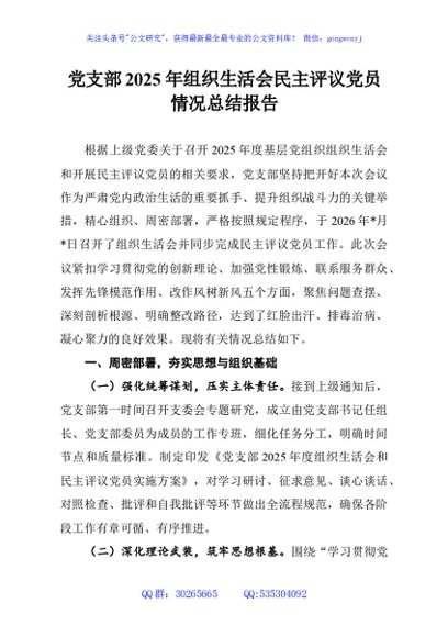 / 党支部2025年组织生活会民主评议党员情况总结报告