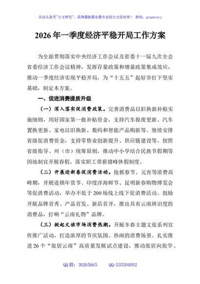 / 2026年一季度经济平稳开局工作方案