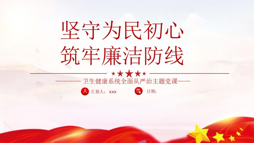 / 卫生健康系统全面从严治主题党课PPT:坚守为民初心筑牢廉洁防线