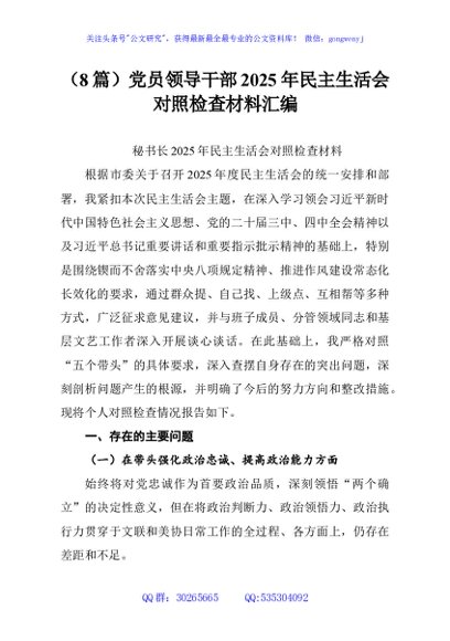 / (8篇)党员领导干部2025年民主生活会对照检查材料汇编